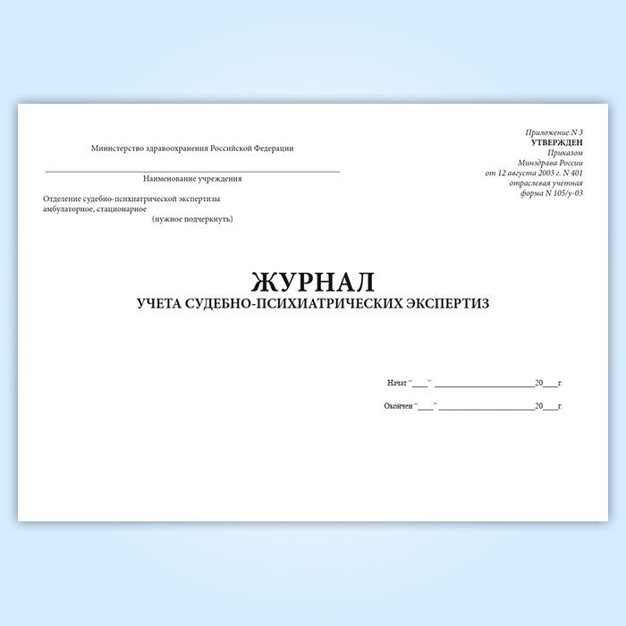 Журнал учета судебно-психиатрических экспертиз (форма 105/у-03) в Обнинске купить