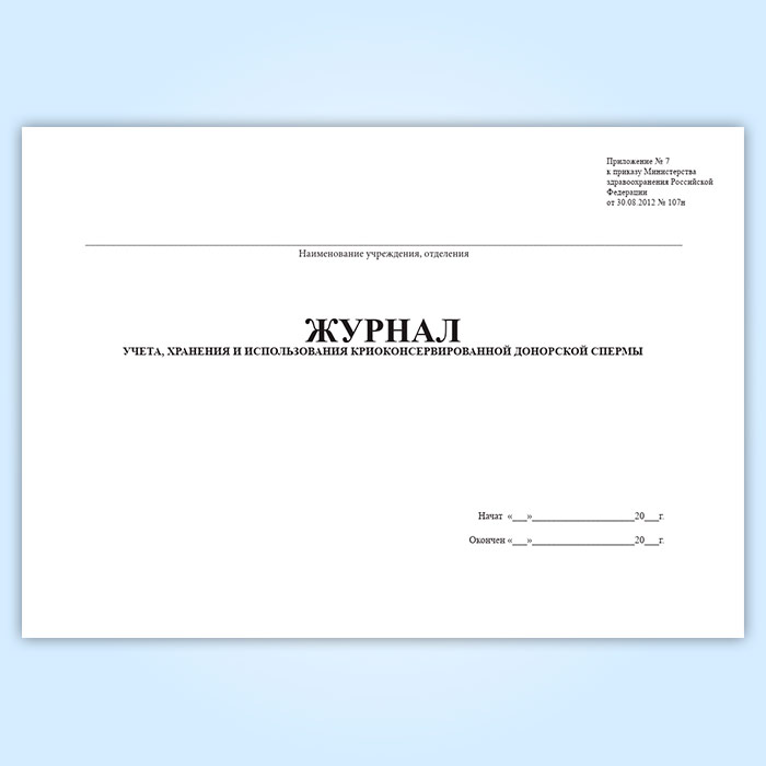 Журнал учета, хранения и использования криоконсервированной донорской спермы в Обнинске купить