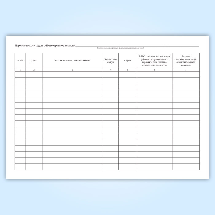 Журнал регистрации операций, связанных с оборотом наркотических средств и психотропных веществ, старшего по бригаде медицинского работника в Обнинске купить