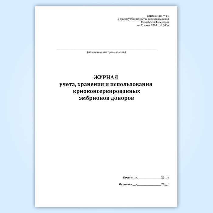 Журнал учета, хранения и использования криоконсервированных эмбрионов доноров в Обнинске купить