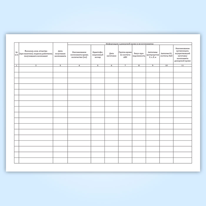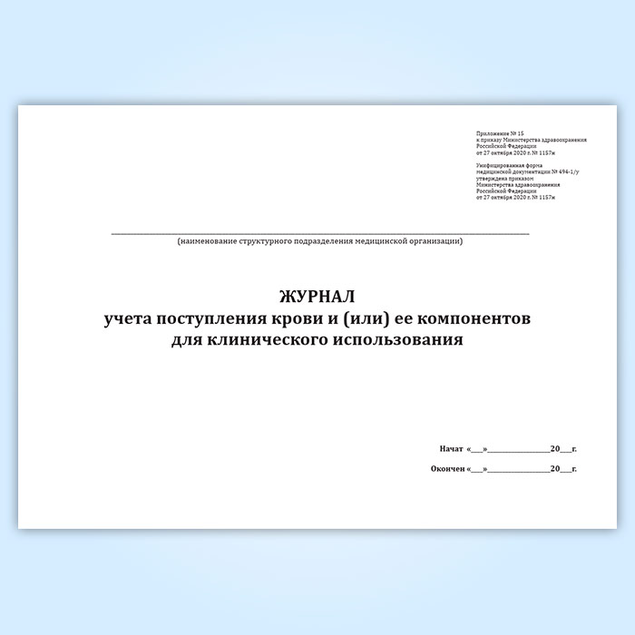 Журнал учета поступления крови и (или) ее компонентов для клинического использования (форма № 494-1/у) в Обнинске купить