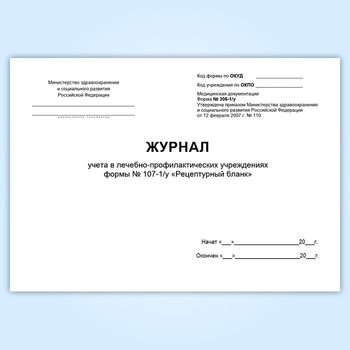 Журнал учета в лечебно-профилактических учреждениях рецептурных бланков формы № 107-1/у (форма № 306-1/у) в Обнинске купить