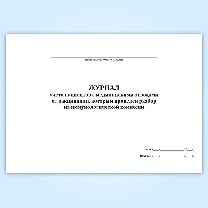 Журнал учета пациентов с медицинскими отводами от вакцинации, которым проведен разбор на иммунологической комиссии в Обнинске купить