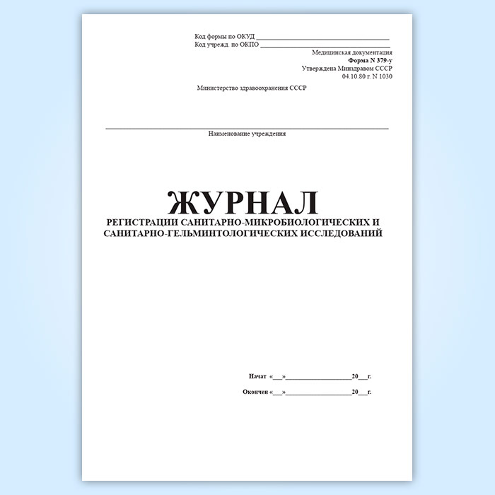 Журнал регистрации санитарно-микробиологических и санитарно-гельминтологических исследований (форма 379-у) в Обнинске купить