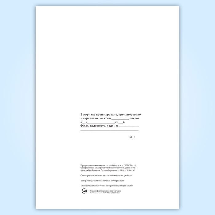 Вы получаете печатную продукцию прошнурованной и c местом для вашей печати в соответствии с действующими нормативными документами: