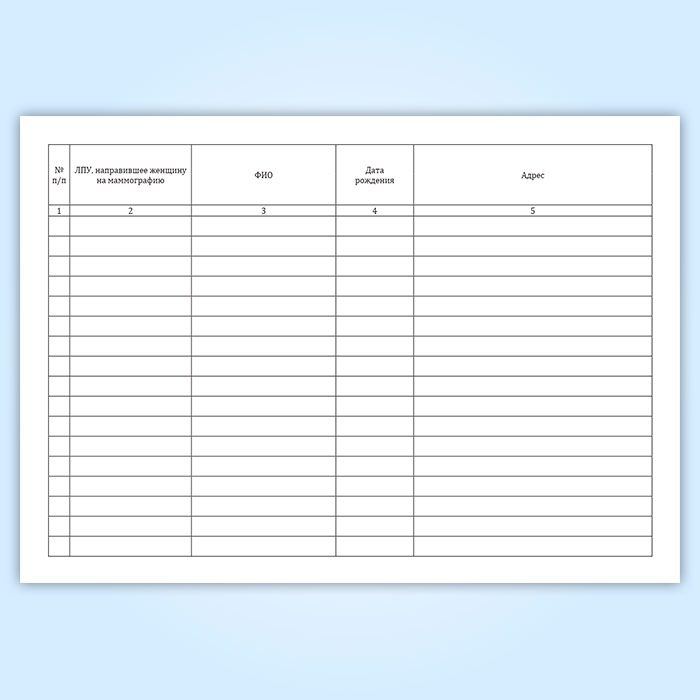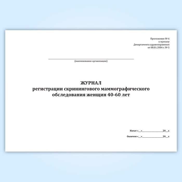 Журнал регистрации скринингового маммографического обследования женщин 40-60 лет в Обнинске купить