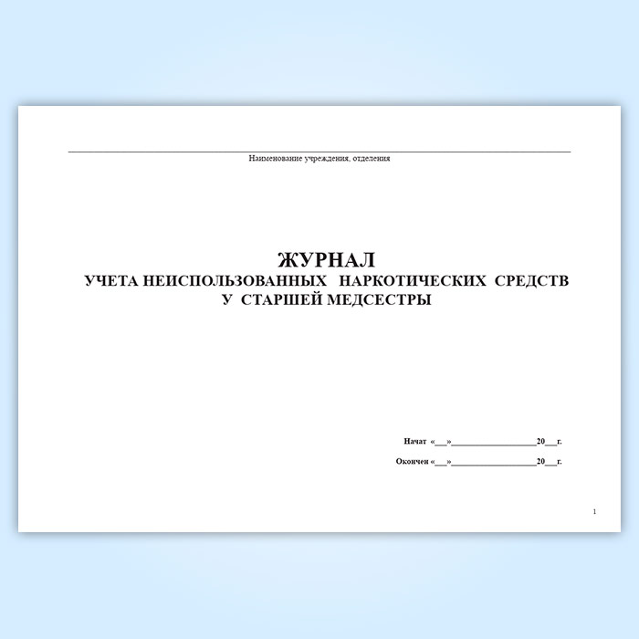 Журнал учета неиспользованных наркотических средств у старшей медсестры в Обнинске купить