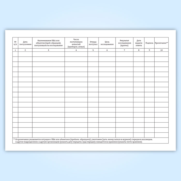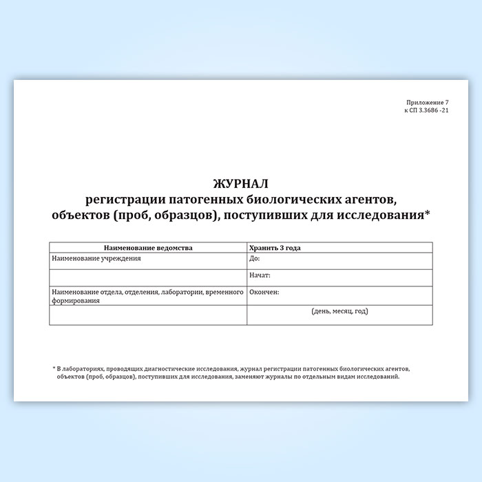 Журнал регистрации патогенных биологических агентов, объектов (проб, образцов), поступивших для исследования в Обнинске купить
