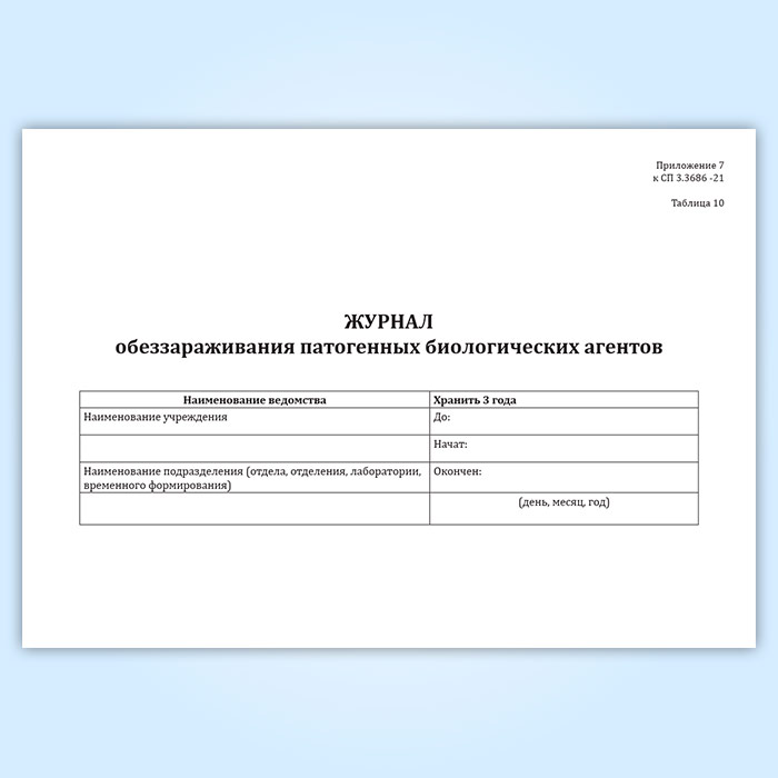 Журнал обеззараживания патогенных биологических агентов (СанПиН 3.3686-21) в Обнинске купить