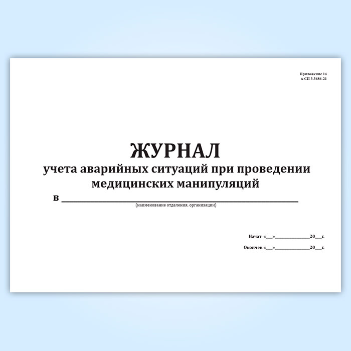 Журнал учета аварийных ситуаций при проведении медицинских манипуляций (СанПиН 3.3686-21) в Обнинске купить