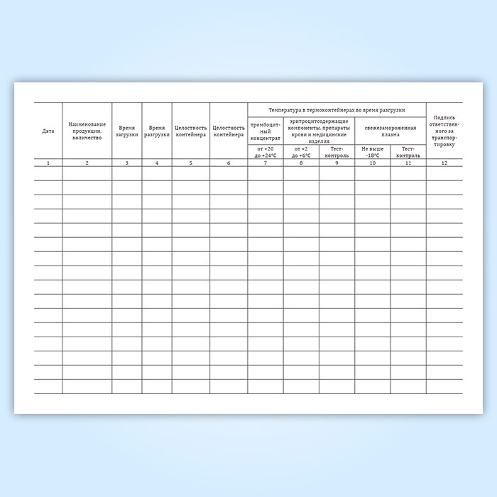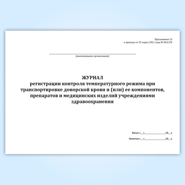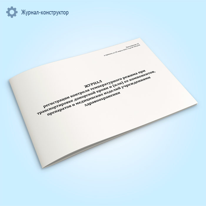 Журнал регистрации контроля температурного режима при транспортировке донорской крови и (или) ее компонентов, препаратов и медицинских изделий учреждениями здравоохранения в Обнинске купить
