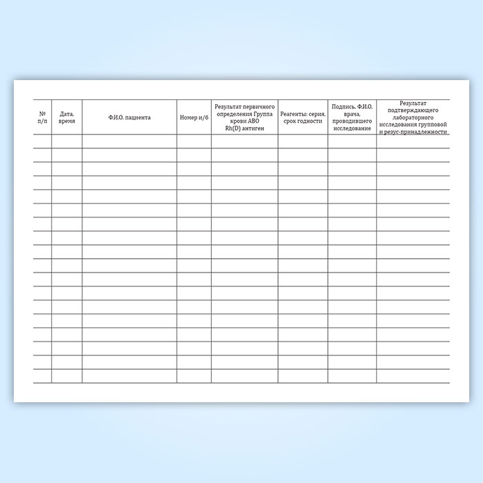 Журнал регистрации первичного определения группы крови в Обнинске купить
