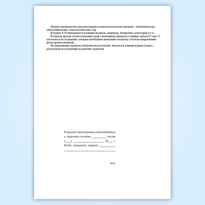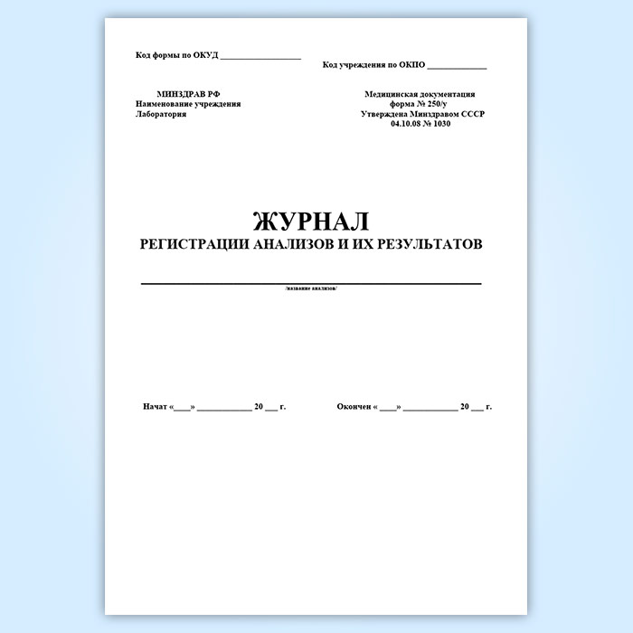 Журнал регистрации анализов и их результатов (форма 250/у) в Обнинске купить