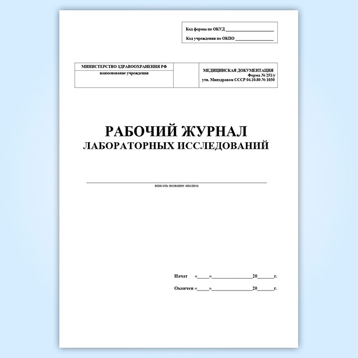 Рабочий журнал лабораторных исследований (форма 251/у) в Обнинске купить
