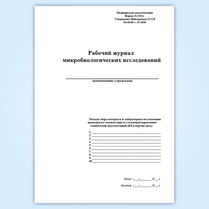 Рабочий журнал микробиологических исследований (форма 253/у) в Обнинске купить