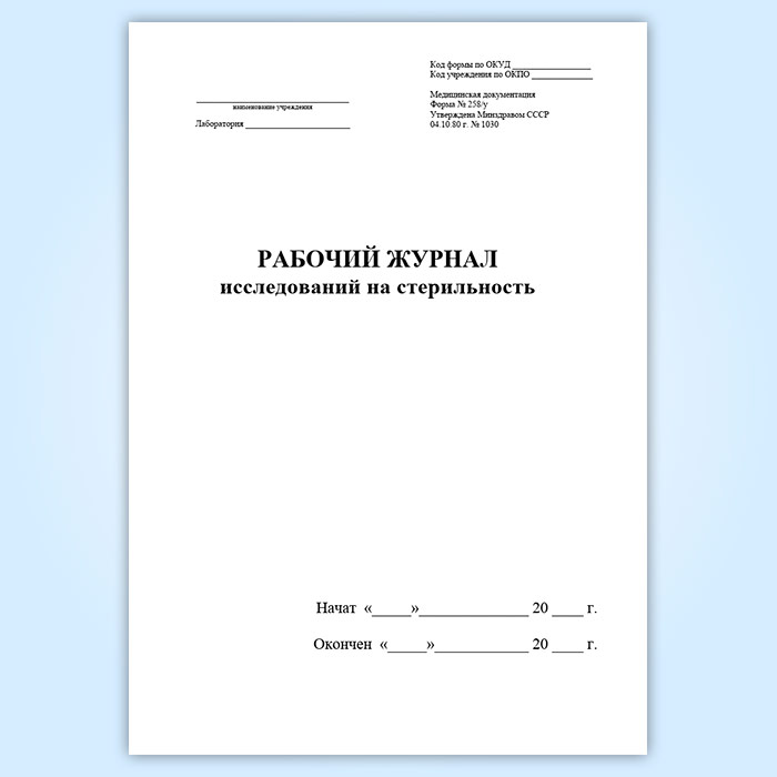 Рабочий журнал исследований на стерильность (форма 258/у) в Обнинске купить