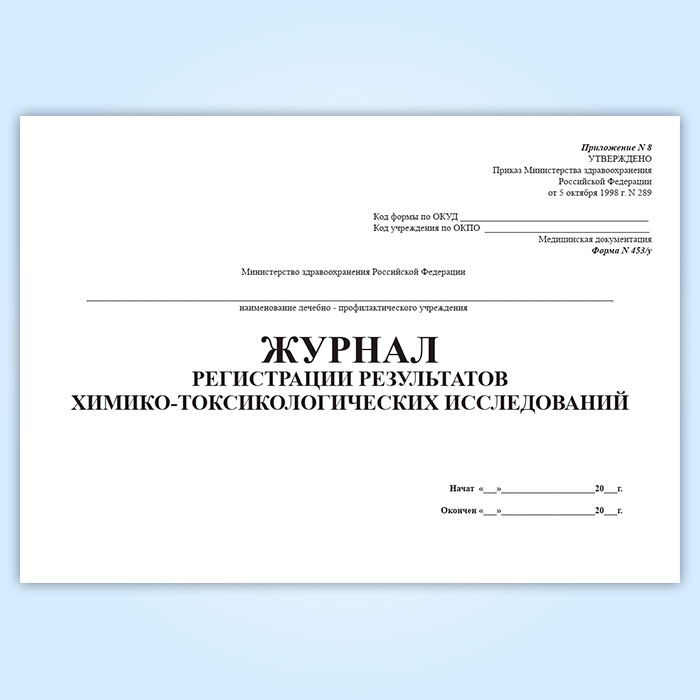 Журнал регистрации результатов химико-токсикологических исследований (форма 453у-06) в Обнинске купить