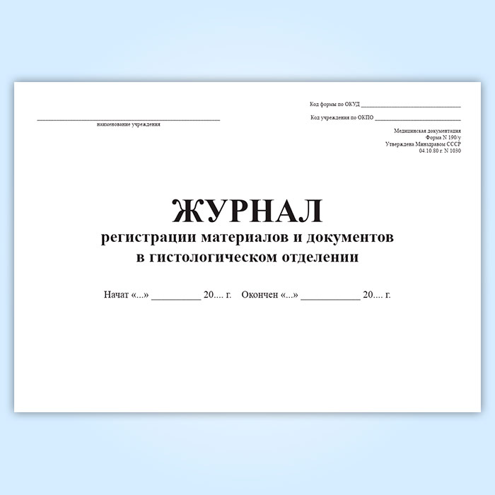 Журнал регистрации материалов и документов в гистологическом отделении (форма 190/у) в Обнинске купить
