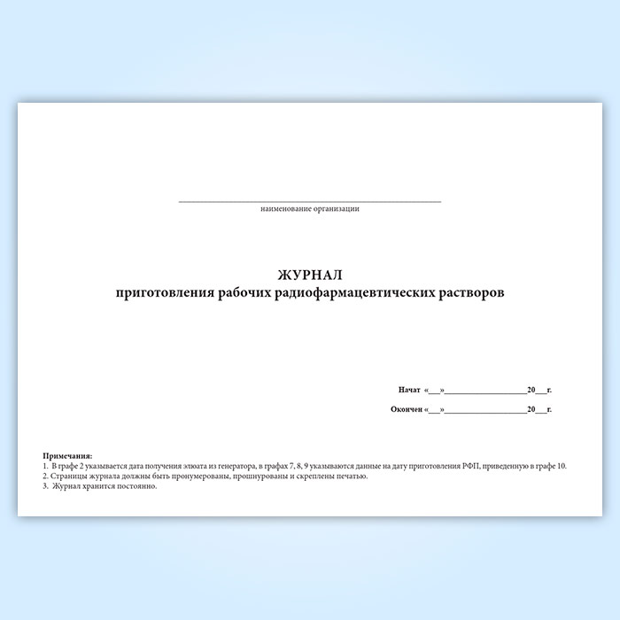 Журнал приготовления рабочих радиофармацевтических растворов в Обнинске купить