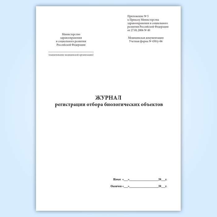 Журнал регистрации отбора биологических объектов (форма 450у-06) в Обнинске купить