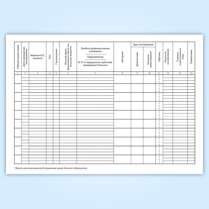 Журнал регистрации микроскопических исследований на туберкулез (форма 04-ТБ/У) в Обнинске купить