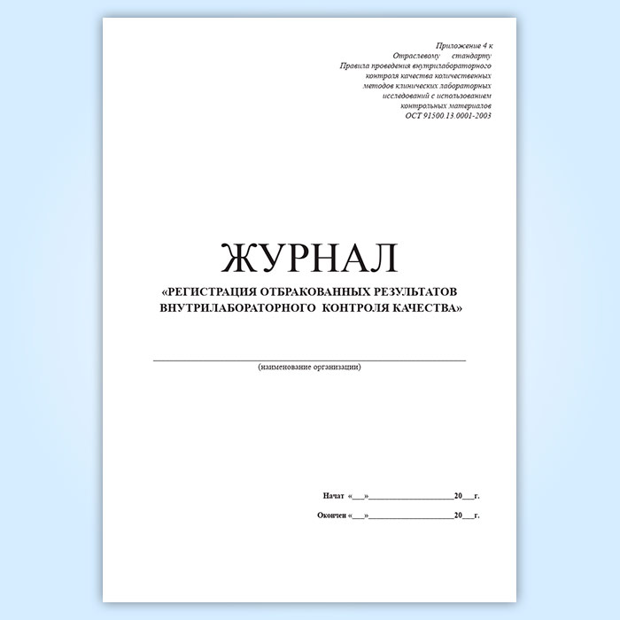 Журнал регистрации отбракованных результатов внутрилабораторного контроля качества в Обнинске купить