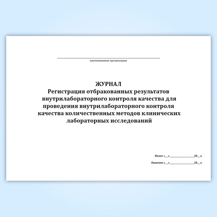 Журнал «Регистрация отбракованных результатов внутрилабораторного контроля качества для проведения внутрилабораторного контроля качества количественных методов клинических лабораторных исследований» в Обнинске купить