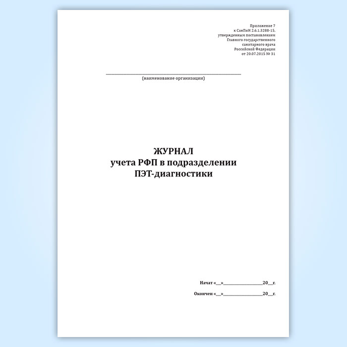 Журнал учета РФП в подразделении ПЭТ-диагностики в Обнинске купить