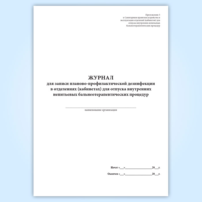 Журнал для записи планово-профилактической дезинфекции в отделениях (кабинетах) для отпуска внутренних непитьевых бальнеотерапевтических процедур в Обнинске купить