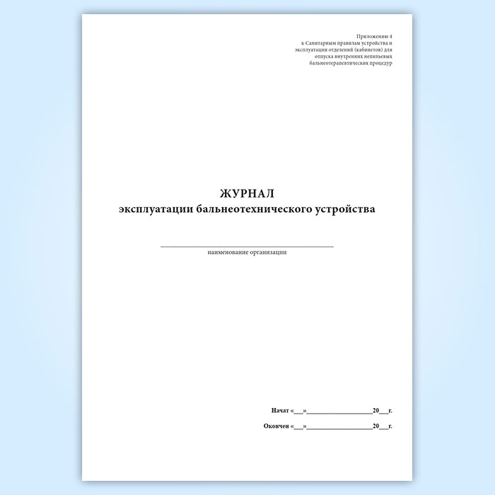 Журнал эксплуатации бальнеотехнического устройства в Обнинске купить