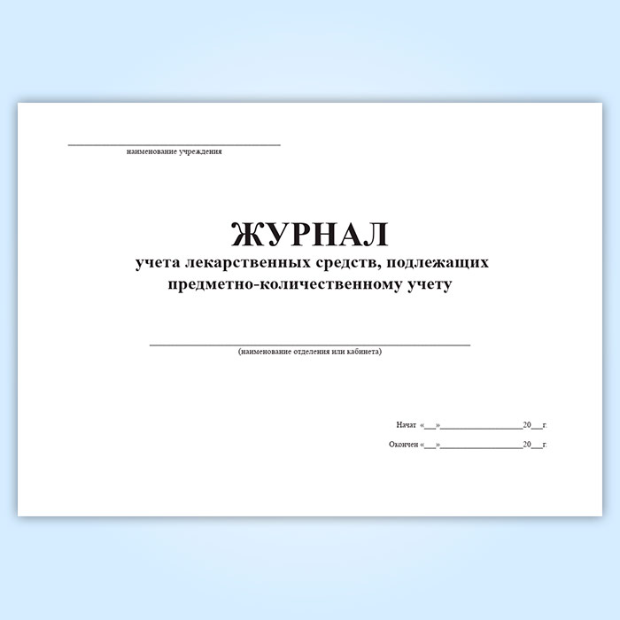 Журнал учета лекарственных средств, подлежащих предметно-количественному учету в Обнинске купить