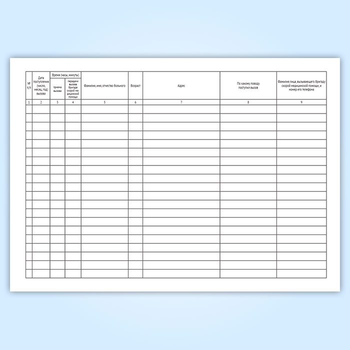 Журнал записи вызовов скорой медицинской помощи (Форма109/у) в Обнинске купить