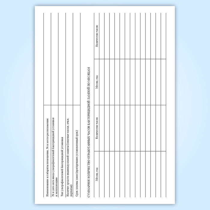 Журнал регистрации и контроля работы бактерицидной установки в Обнинске купить