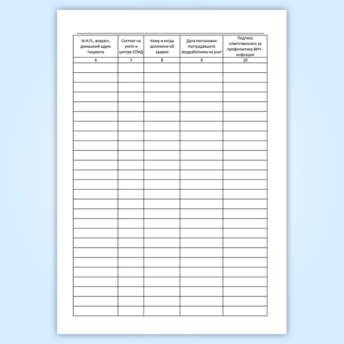 Журнал учета аварийных ситуаций по риску профессионального заражения ВИЧ-инфекцией медицинских работников в Обнинске купить