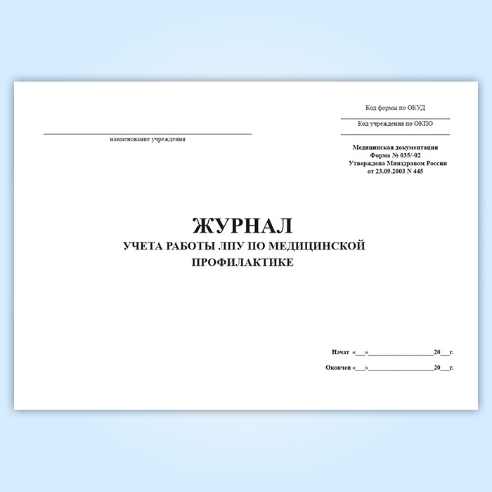 Журнал учета работы ЛПУ по медицинской профилактике (форма № 035/-02) в Обнинске купить