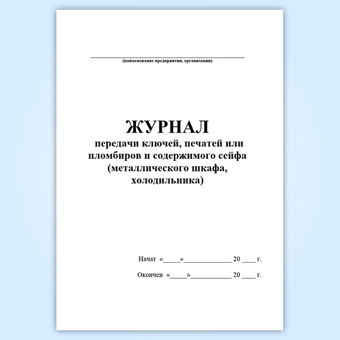 Журнал передачи ключей, печатей или пломбиров и содержимого сейфа (металлического шкафа, холодильника) в Обнинске купить