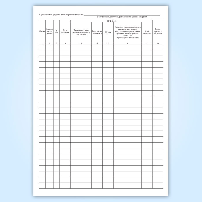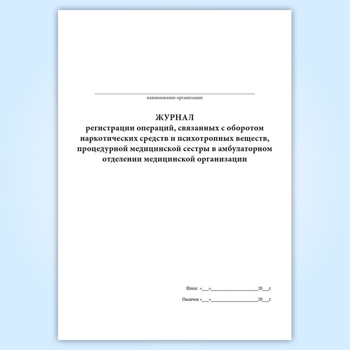 Журнал регистрации операций, связанных с оборотом наркотических средств и психотропных веществ, процедурной медицинской сестры в амбулаторном отделении медицинской организации в Обнинске купить