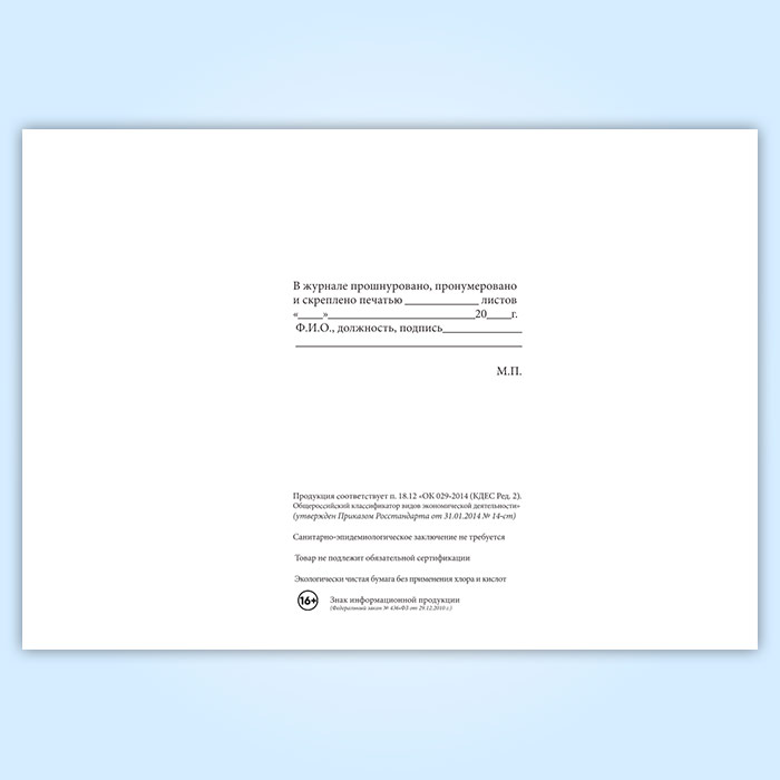 Вы получаете печатную продукцию прошнурованной и c местом для вашей печати в соответствии с действующими нормативными документами: