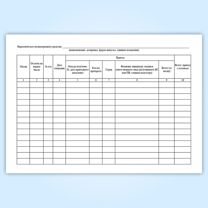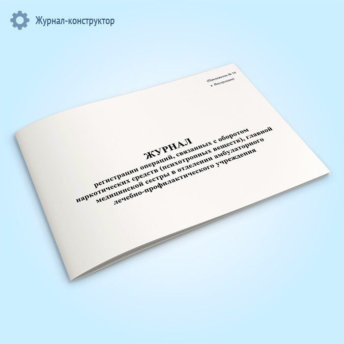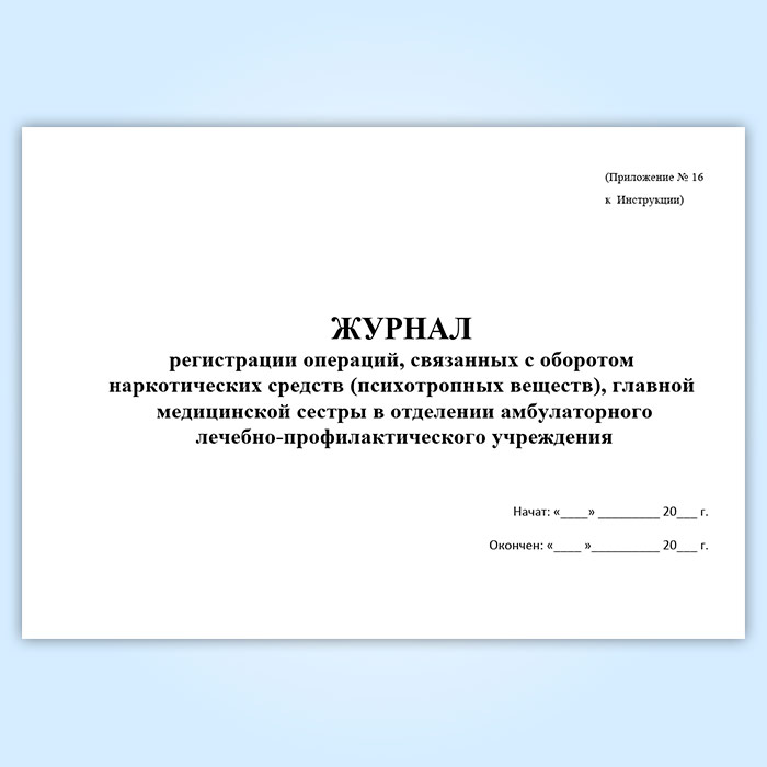 Журнал регистрации операций, связанных с оборотом наркотических средств (психотропных веществ), главной медицинской сестры в отделении амбулаторного лечебно-профилактического учреждения в Обнинске купить
