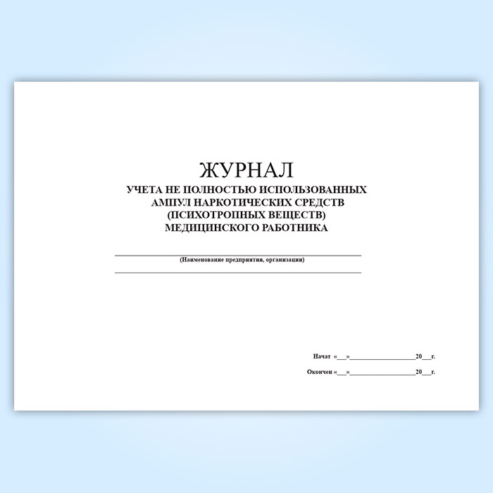 Журнал учета не полностью использованных ампул наркотических средств (психотропных веществ) медицинского работника в Обнинске купить