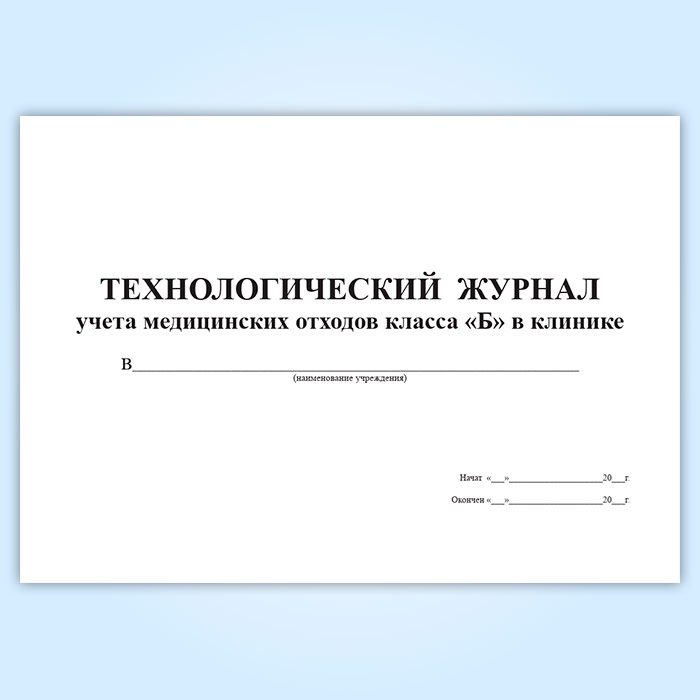 Технологический журнал учета медицинских отходов класса Б в клинике в Обнинске купить
