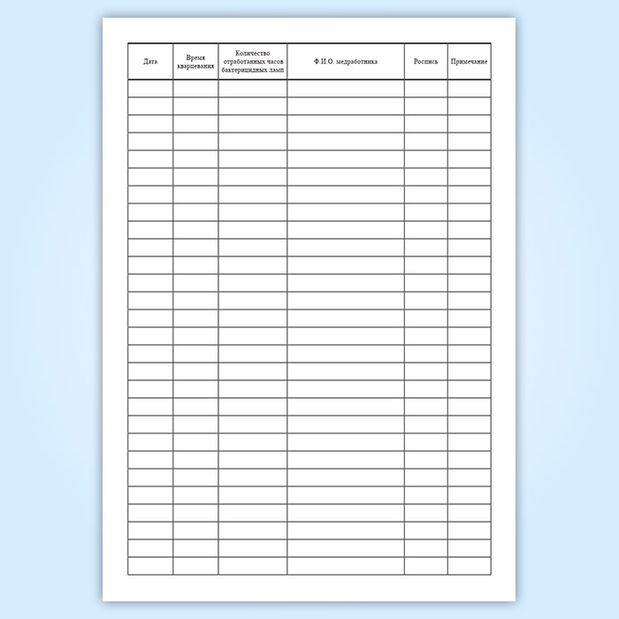 Журнал регистрации и контроля работы бактерицидной лампы в Обнинске купить