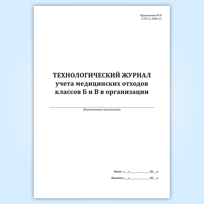 Технологический журнал учета медицинских отходов классов Б и В в организации в Обнинске купить