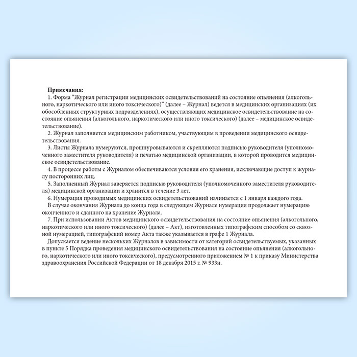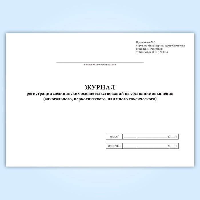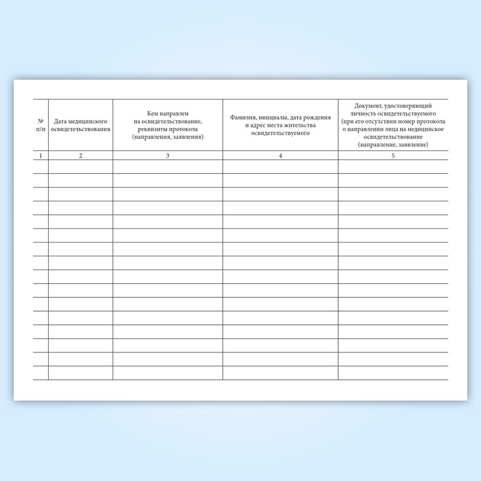 Журнал регистрации медицинских освидетельствований на состояние опьянения (алкогольного, наркотического или иного токсического) в Обнинске купить