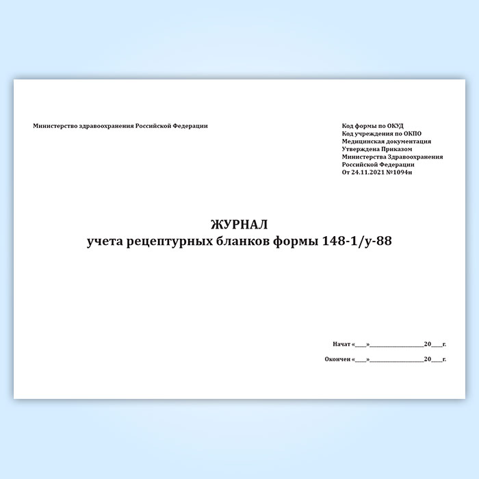 Журнал учета рецептурных бланков формы 148-1/у-88 (новый) (Приказ Минздрава России от 24.11.2021 N 1094н) в Обнинске купить