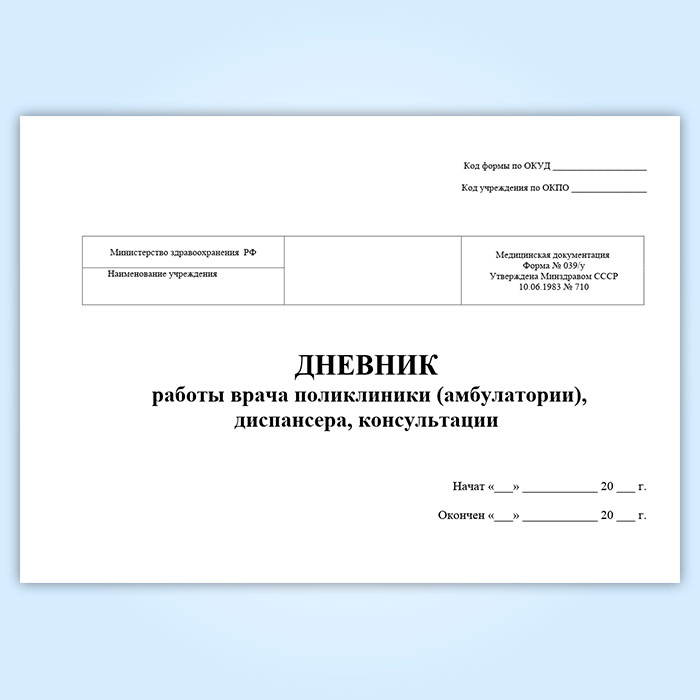Дневник работы врача поликлиники (амбулатории), диспансера, консультации (форма 039/у) в Обнинске купить