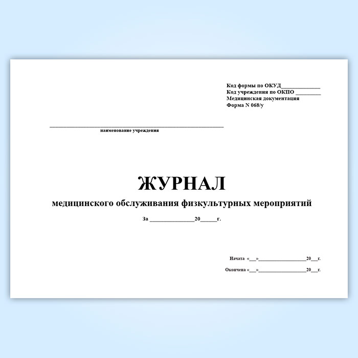 Журнал медицинского обслуживания физкультурных мероприятий (форма 068/у) в Обнинске купить