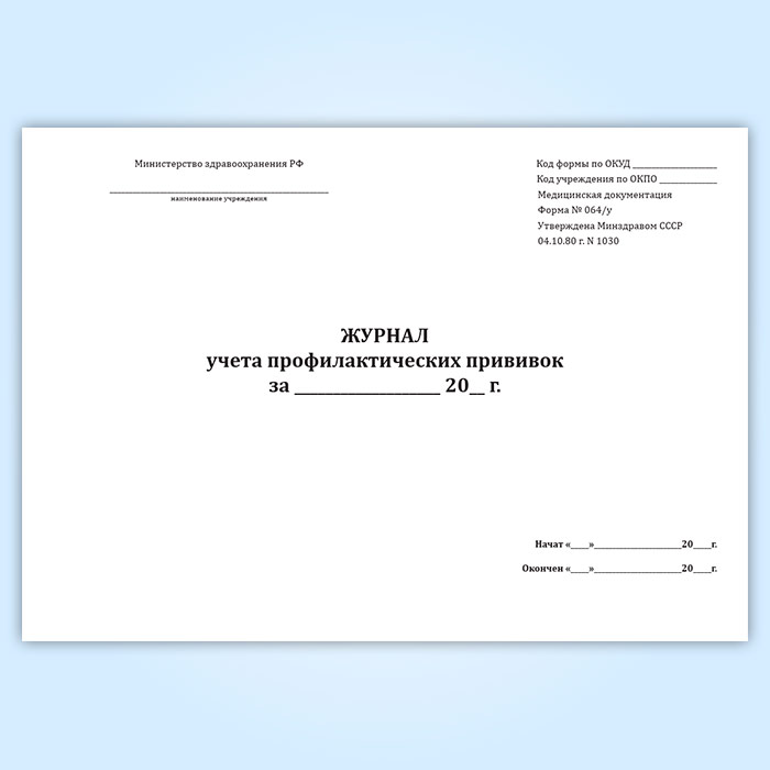 Журнал учета профилактических прививок (форма № 064/у) в Обнинске купить
