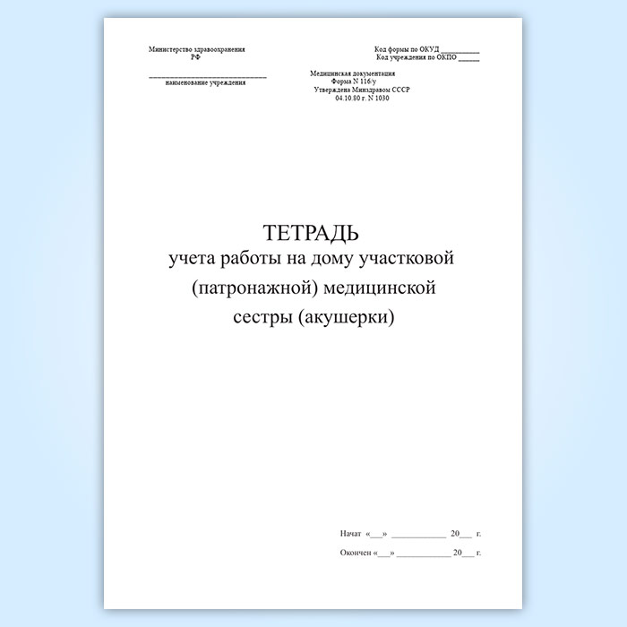 Тетрадь учета работы на дому участковой (патронажной) медицинской сестры (акушерки) (форма 116/у) в Обнинске купить