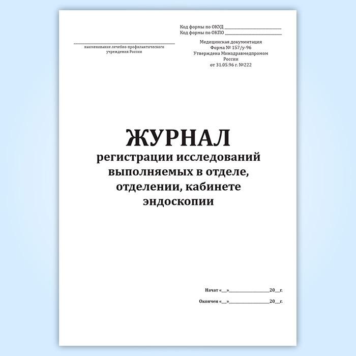 Журнал регистрации исследований выполняемых в отделе, отделении, кабинете эндоскопии (форма № 157/у-96) в Обнинске купить